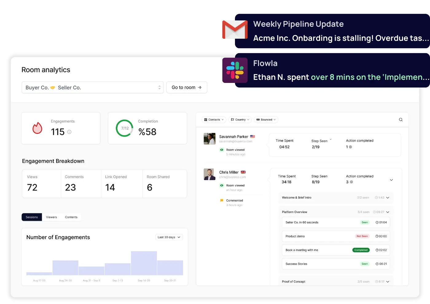 Flowla offers granular insights into your stakeholders, client engagement, and progress.