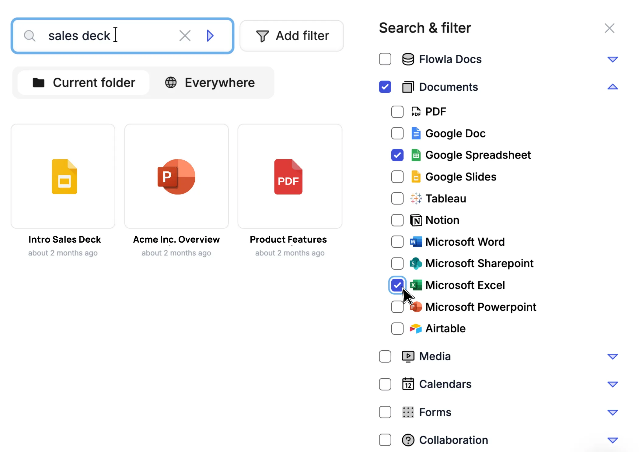 Your team finds materials with ease in seconds with tags, search, and filters.
